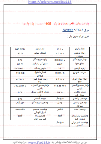 آموزش جدول پارامترهای ها استاندارد خودروی پژو 405 و سمند و پارس S2000