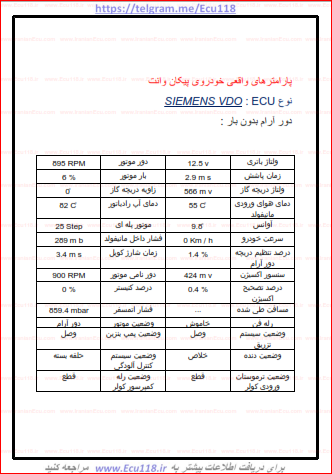 آموزش جدول پارامترهای ها استاندارد خوروی پیکان وانت زیمنس
